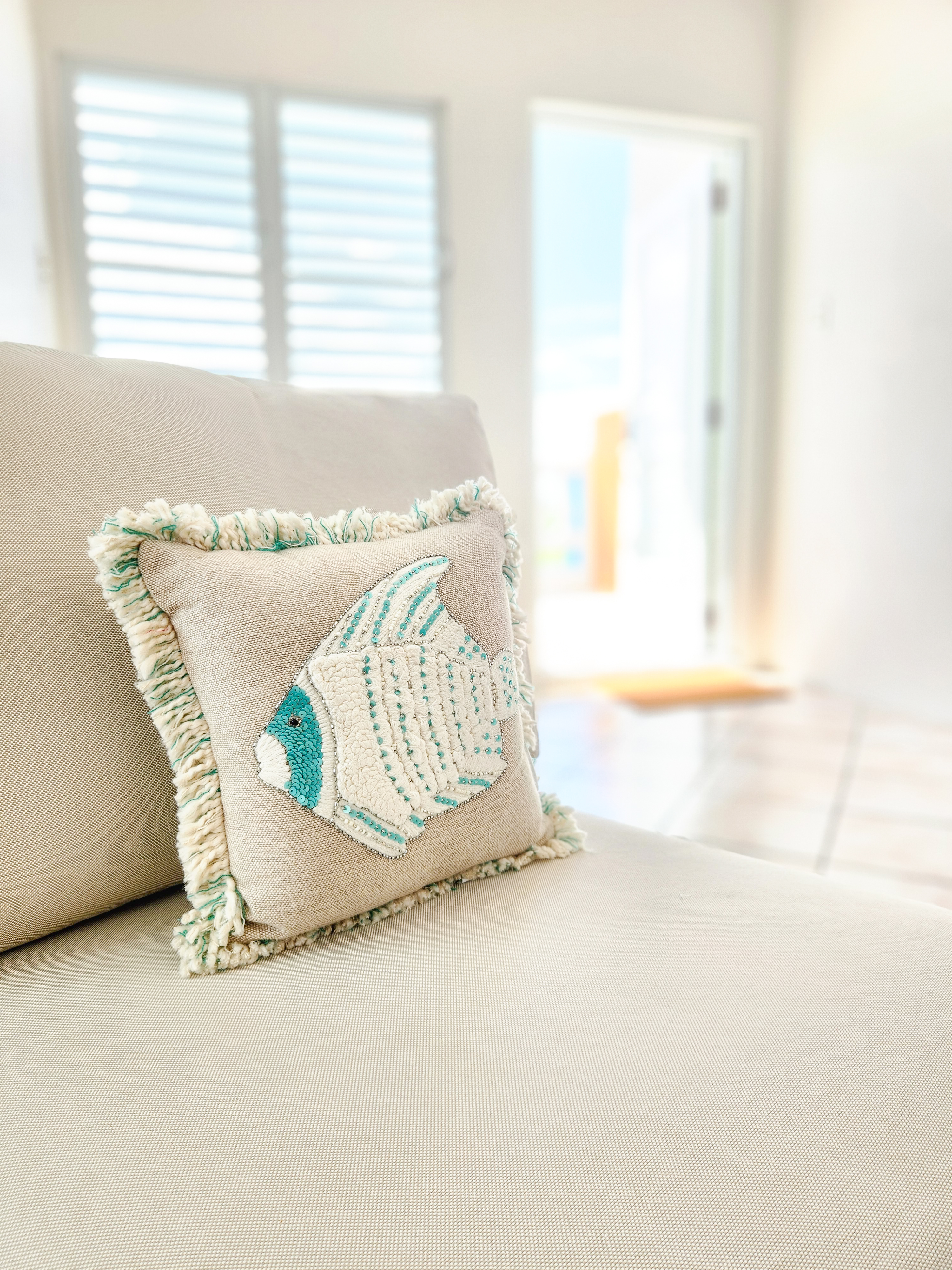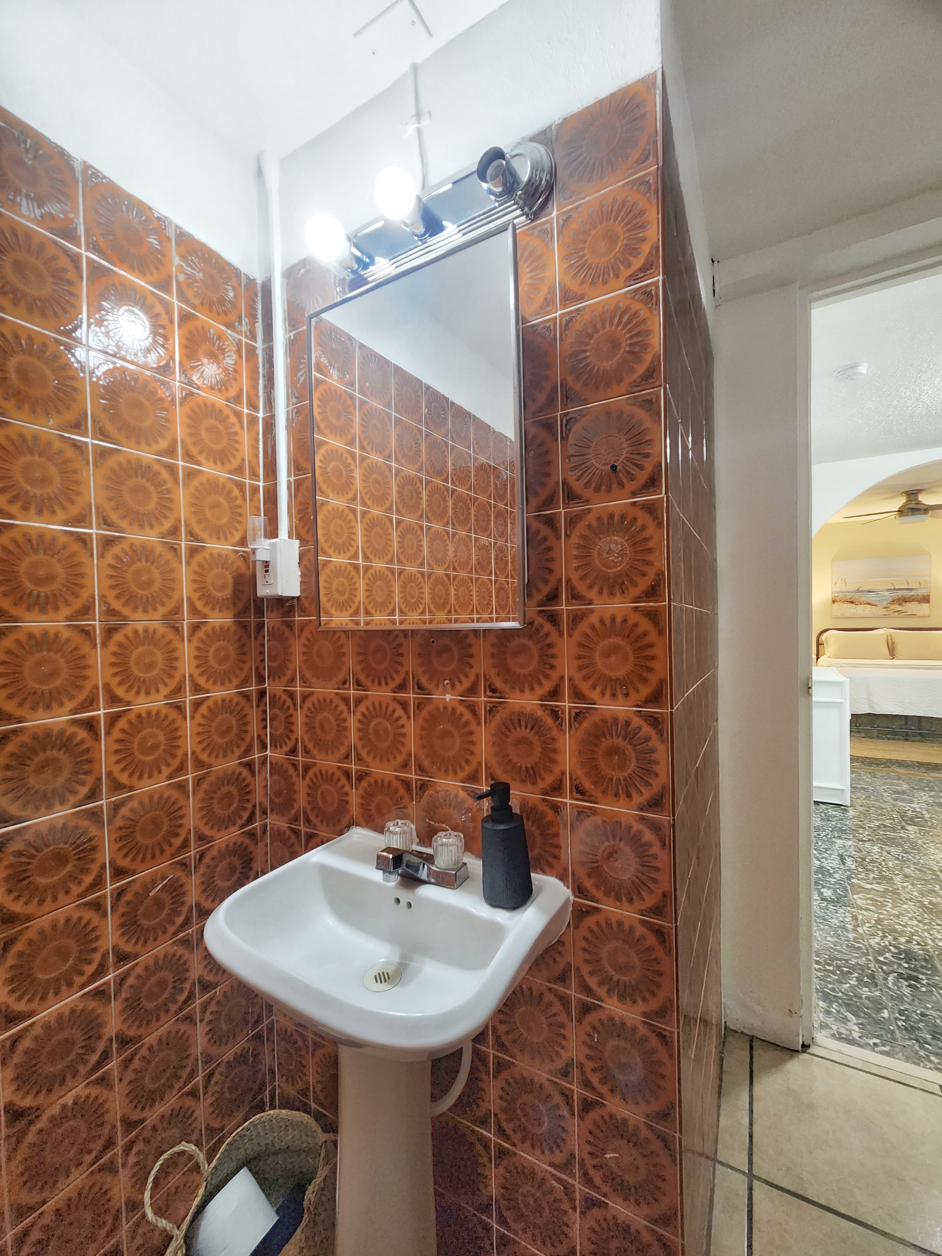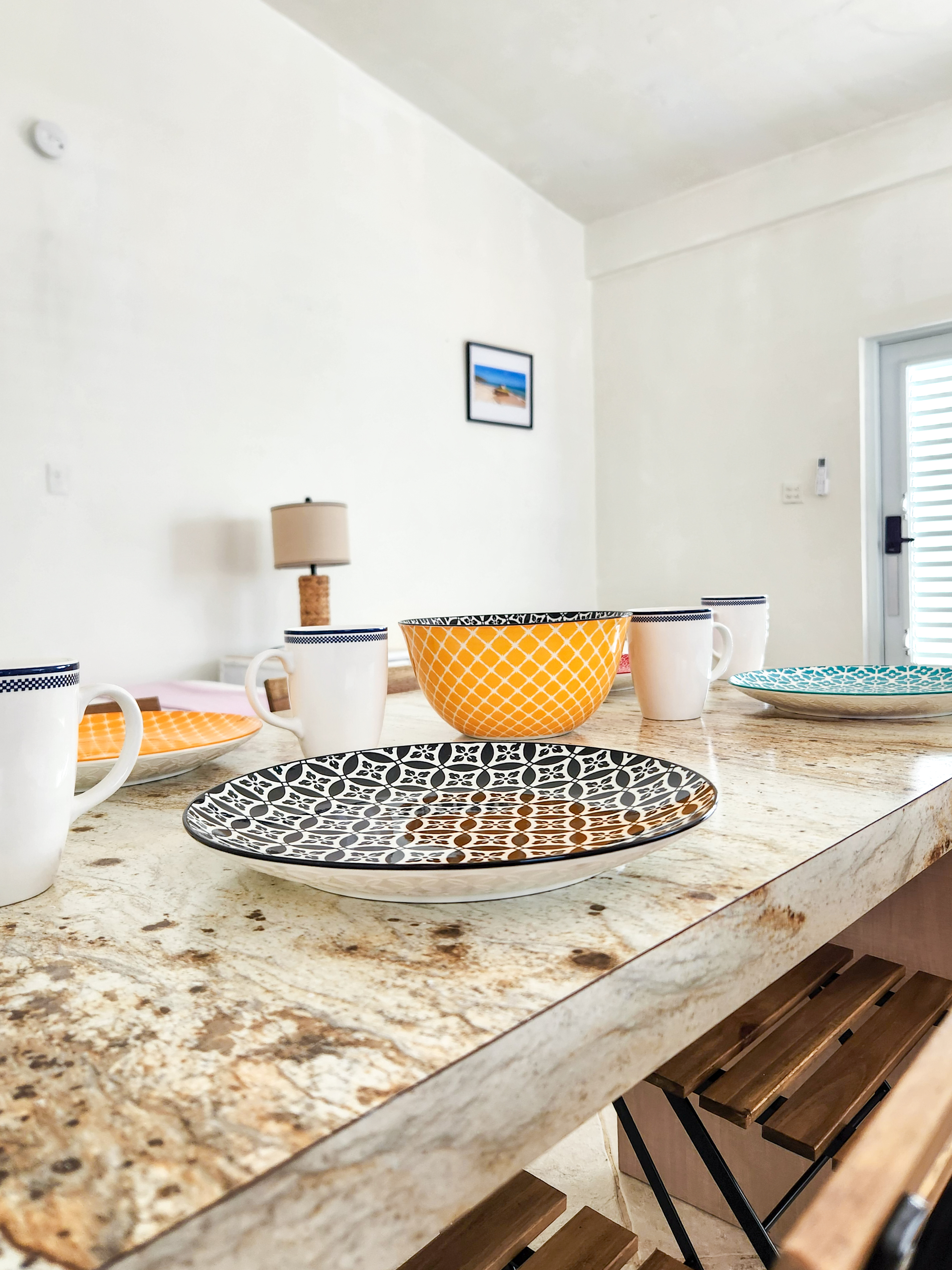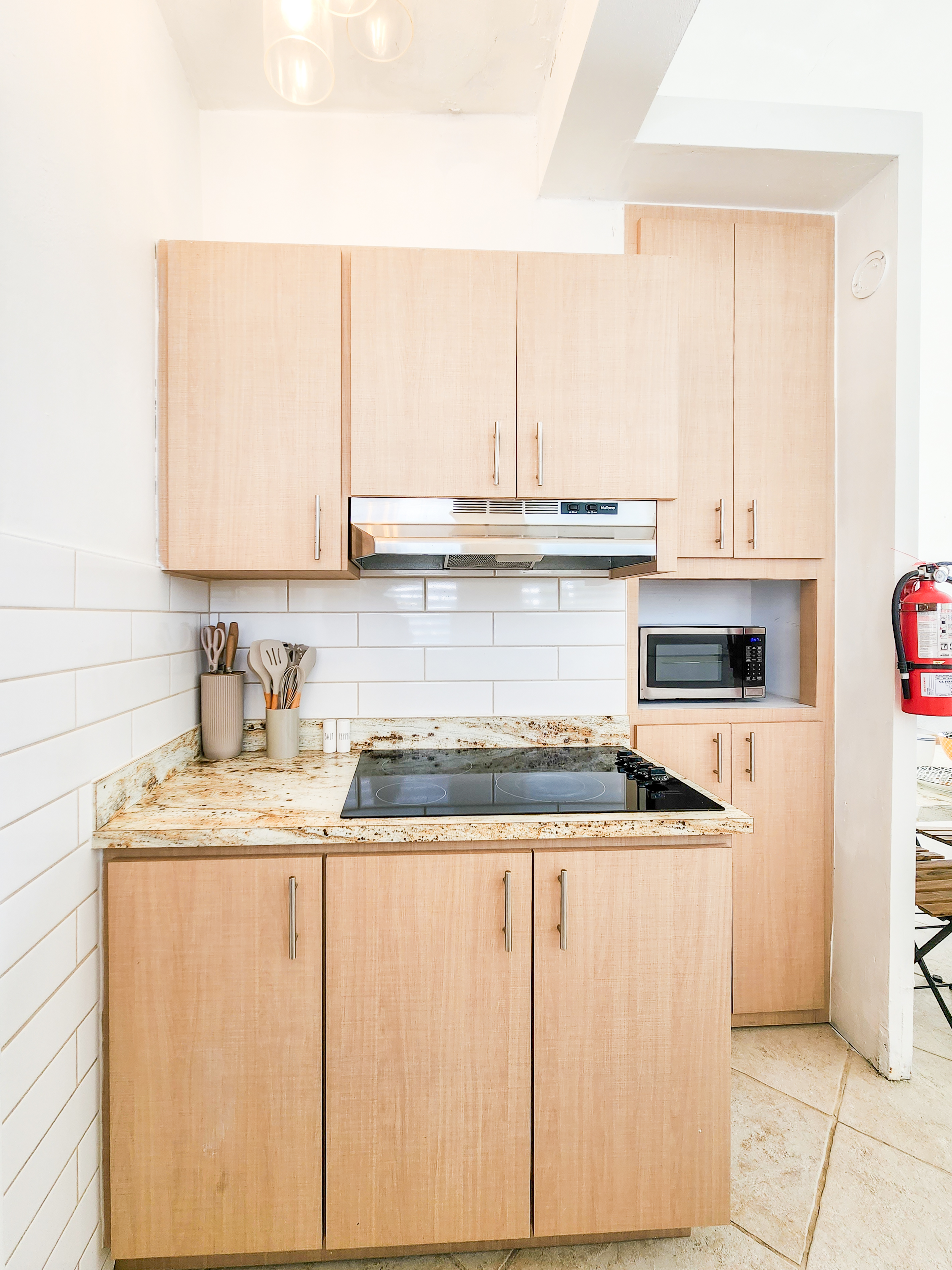 Penthouse Apartment 10 is a spacious suite ideal for larger groups. It features one queen bedroom, a kitchen, a living area, a full bathroom, a shared terrace with an ocean view, and a private balcony with ocean view. The suite sleeps up to 6 adults: 2 in the queen bedroom and 4 in the living area with a sofa bed and two twin beds.