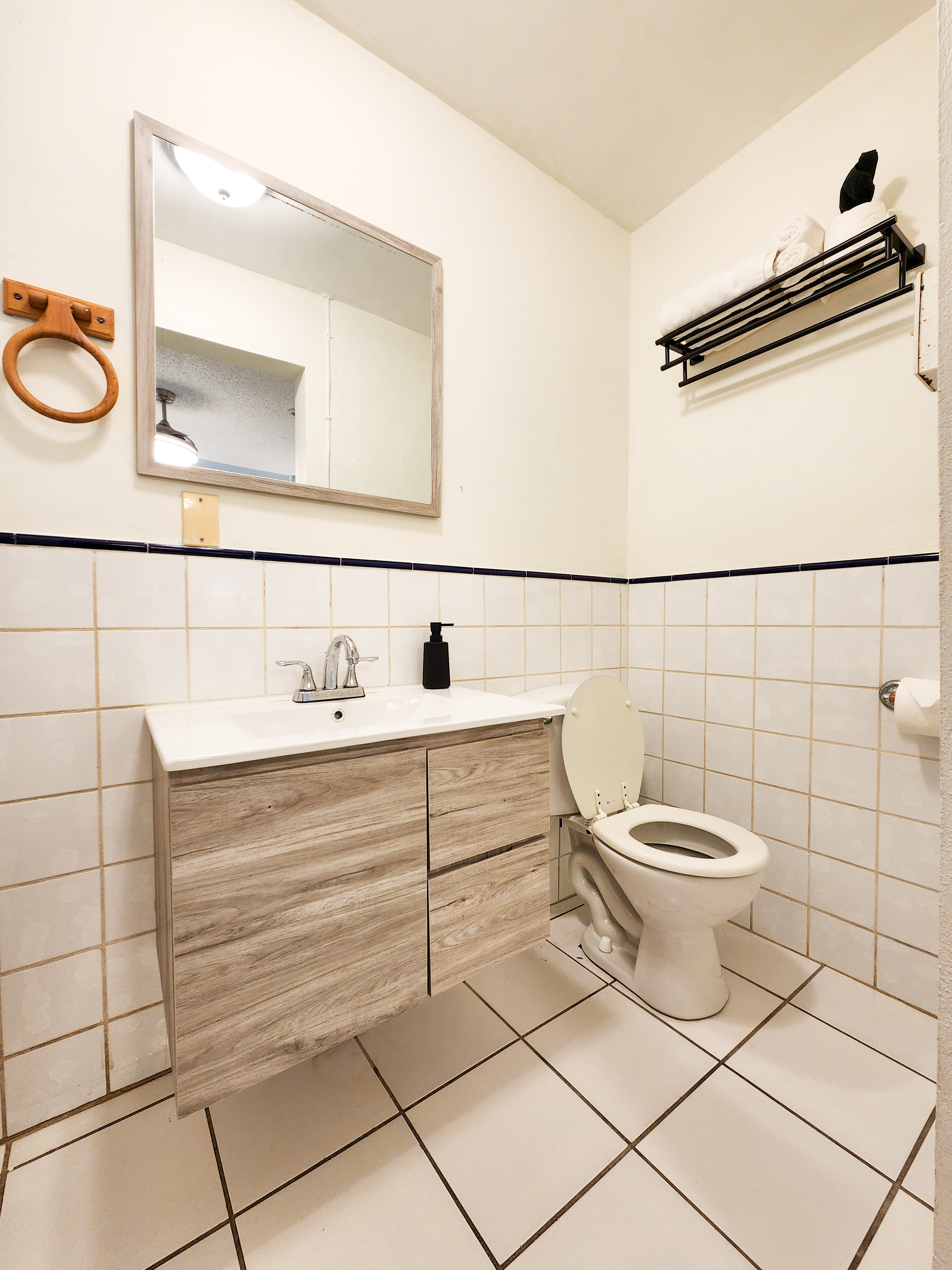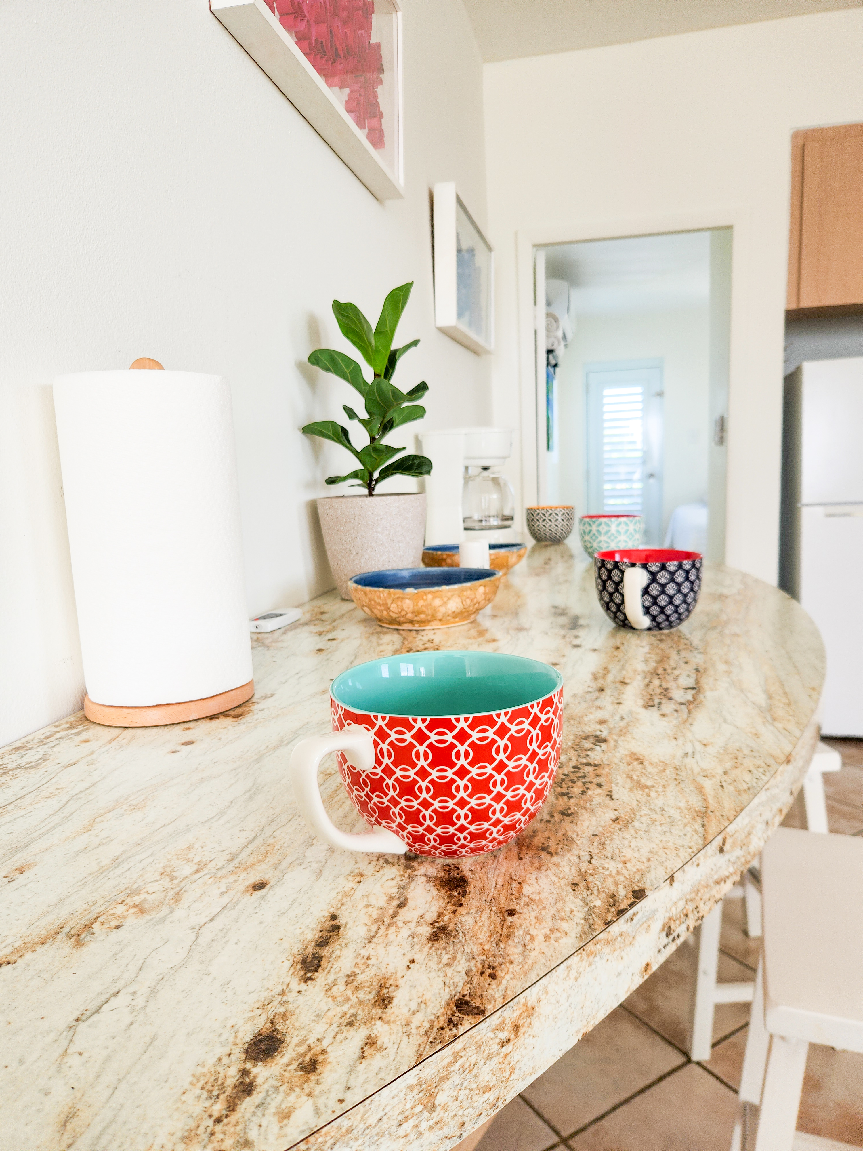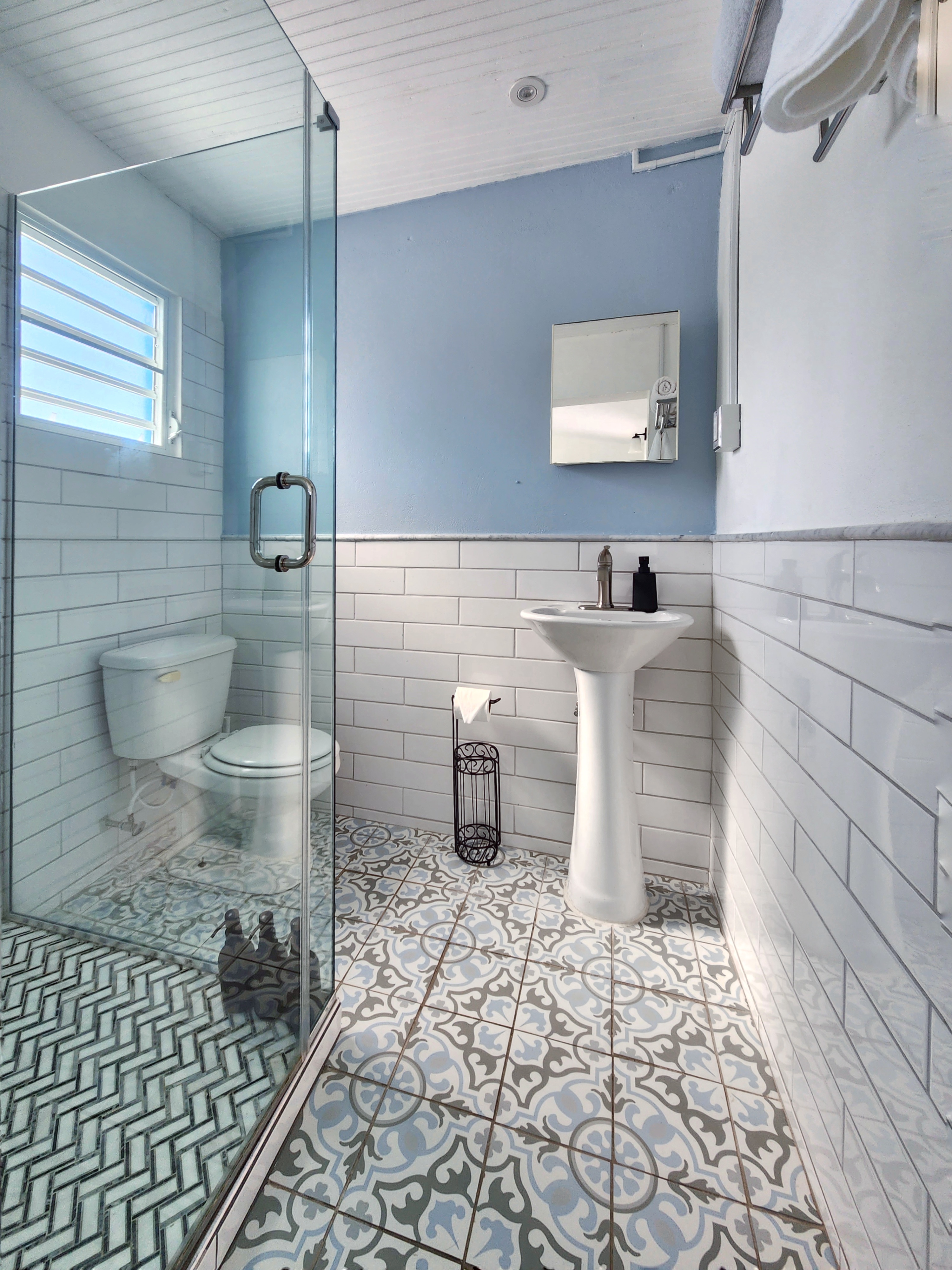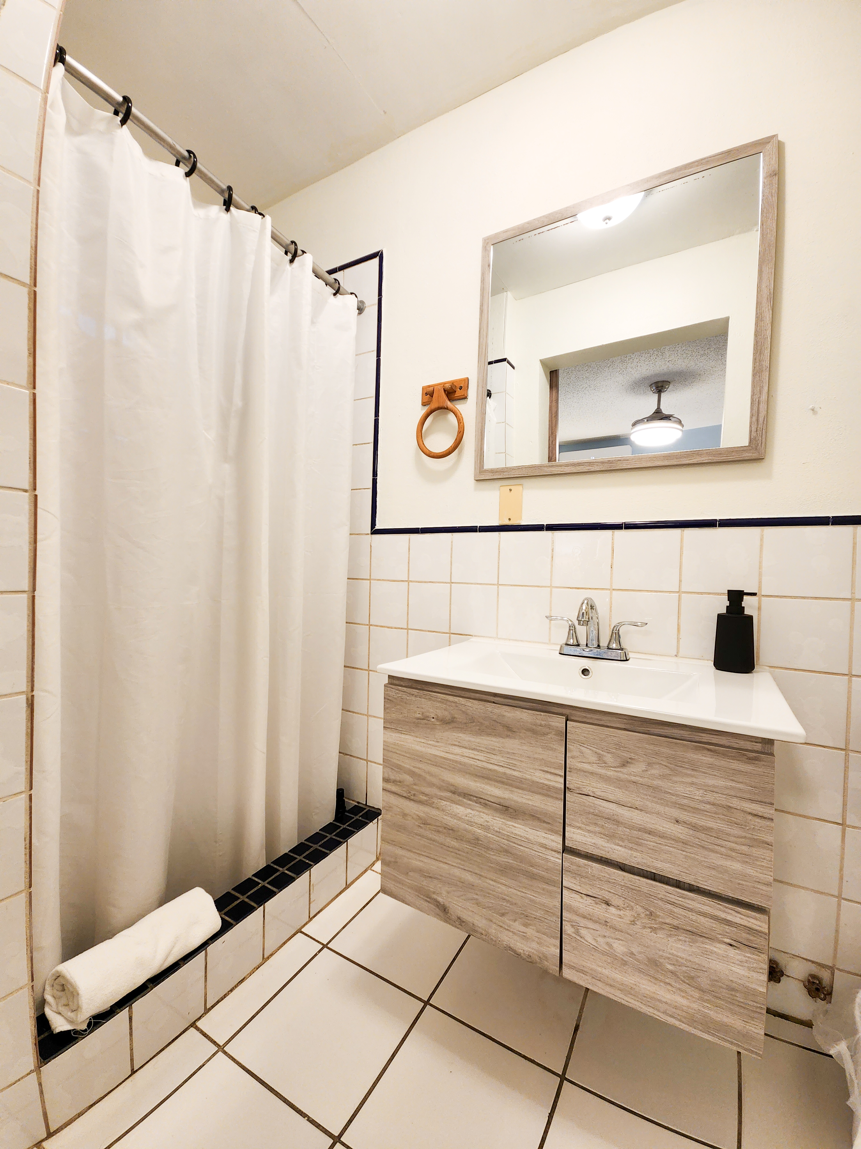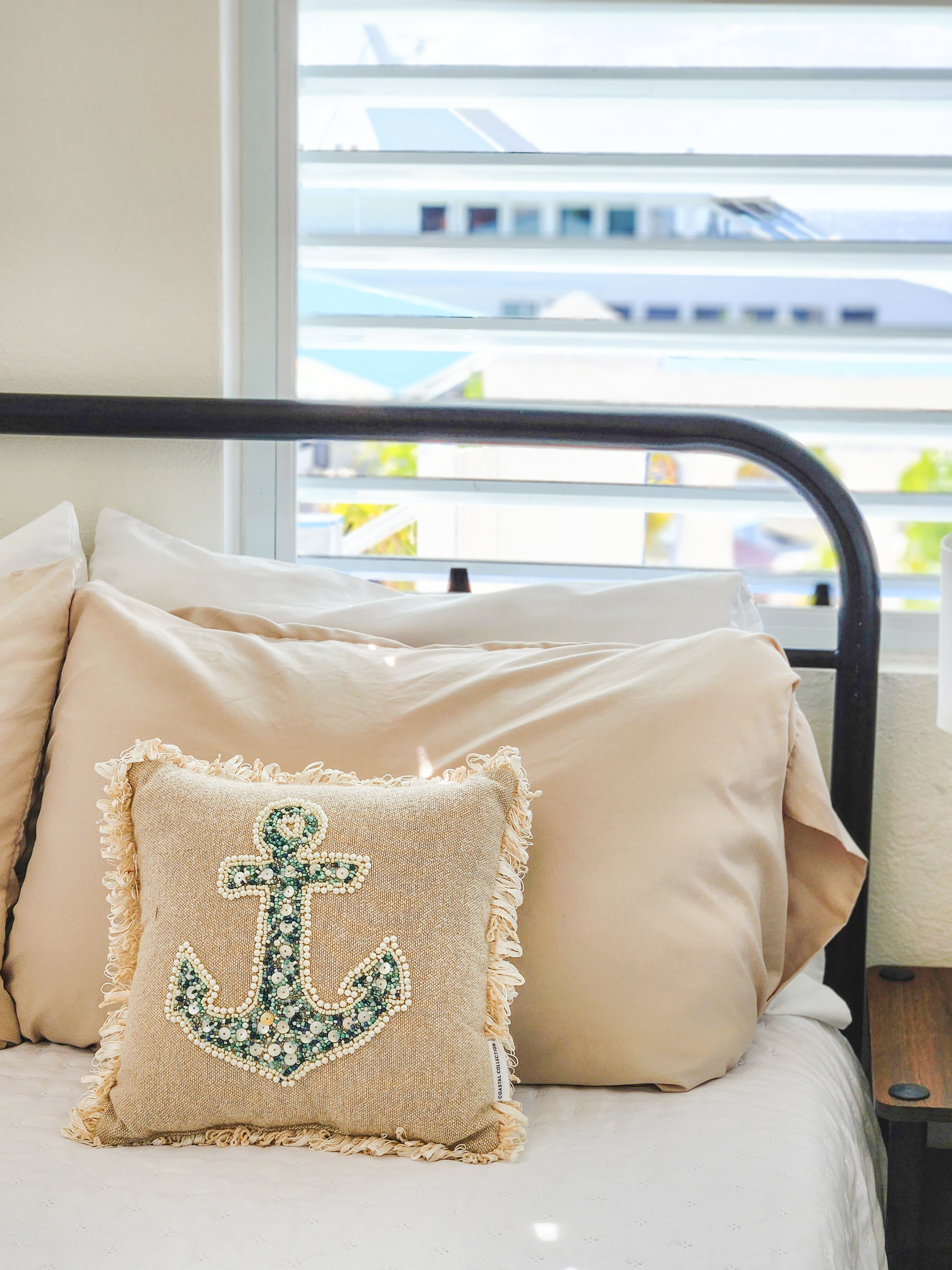 Penthouse Apartment 10 is a spacious suite ideal for larger groups. It features one queen bedroom, a kitchen, a living area, a full bathroom, a shared terrace with an ocean view, and a private balcony with ocean view. The suite sleeps up to 6 adults: 2 in the queen bedroom and 4 in the living area with a sofa bed and two twin beds.
