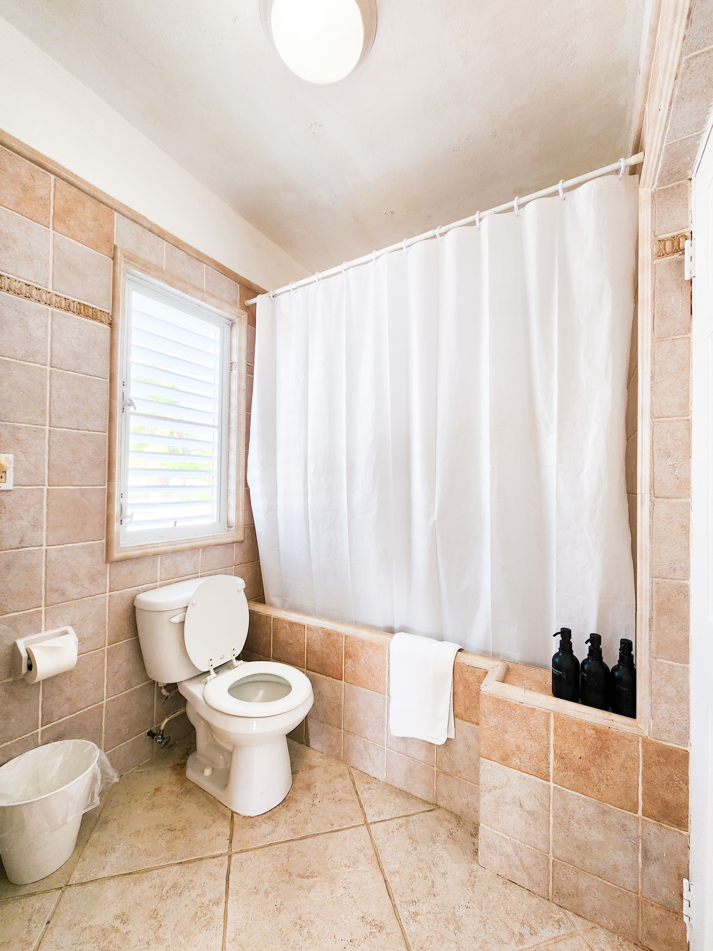Large room for 3 with a double and a twin bed. A small table and chairs, nightstands, a dresser, and a full en-suite bathroom complete the room.