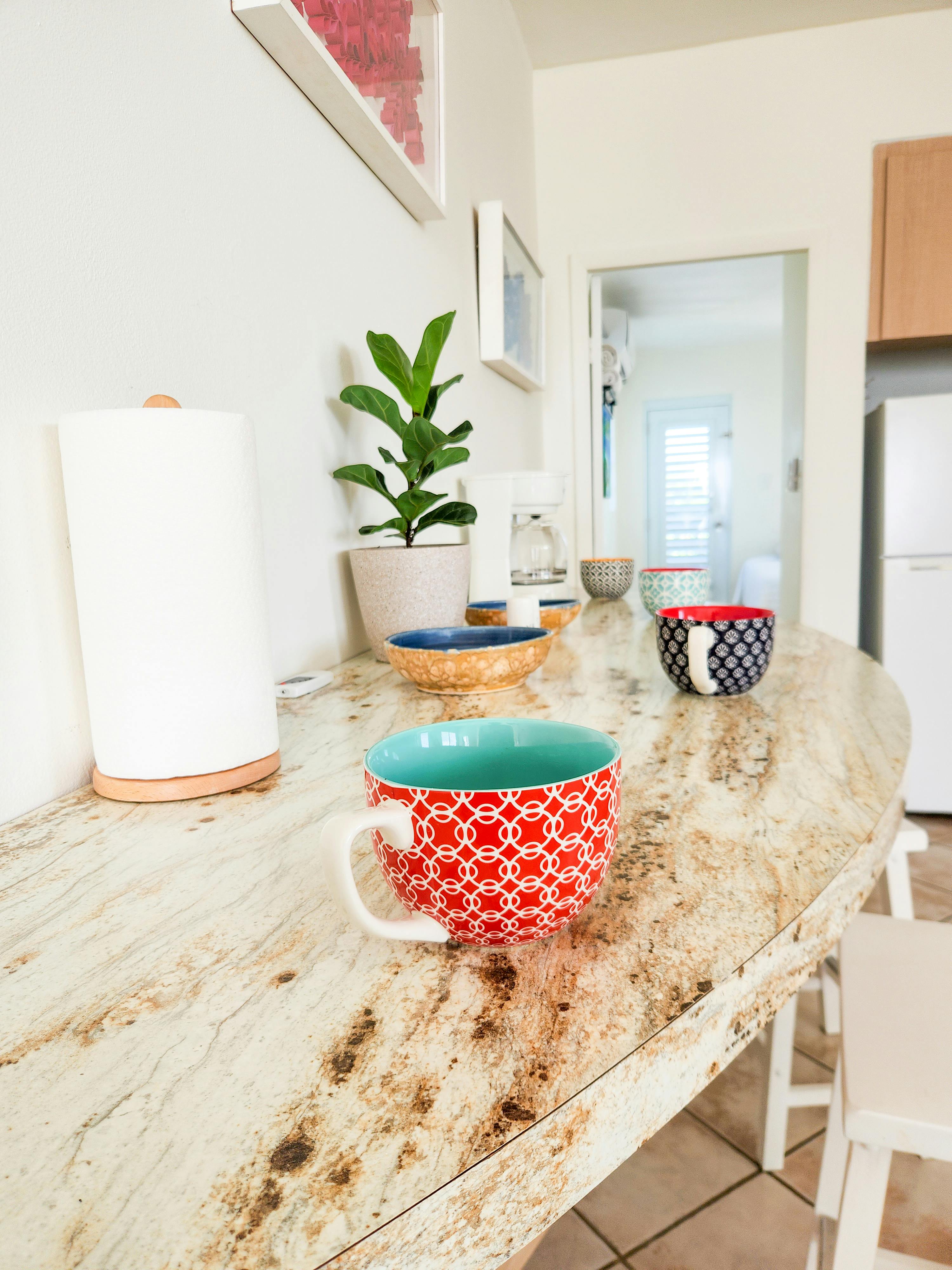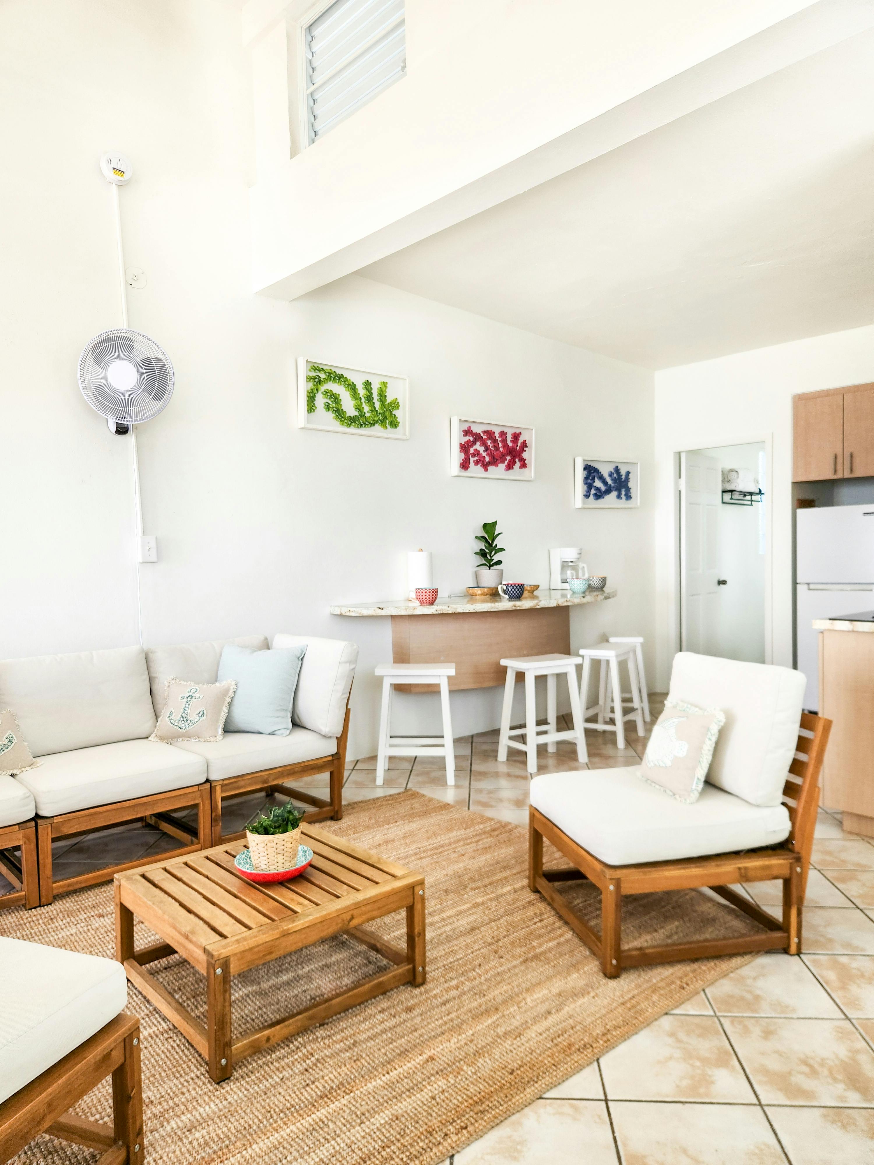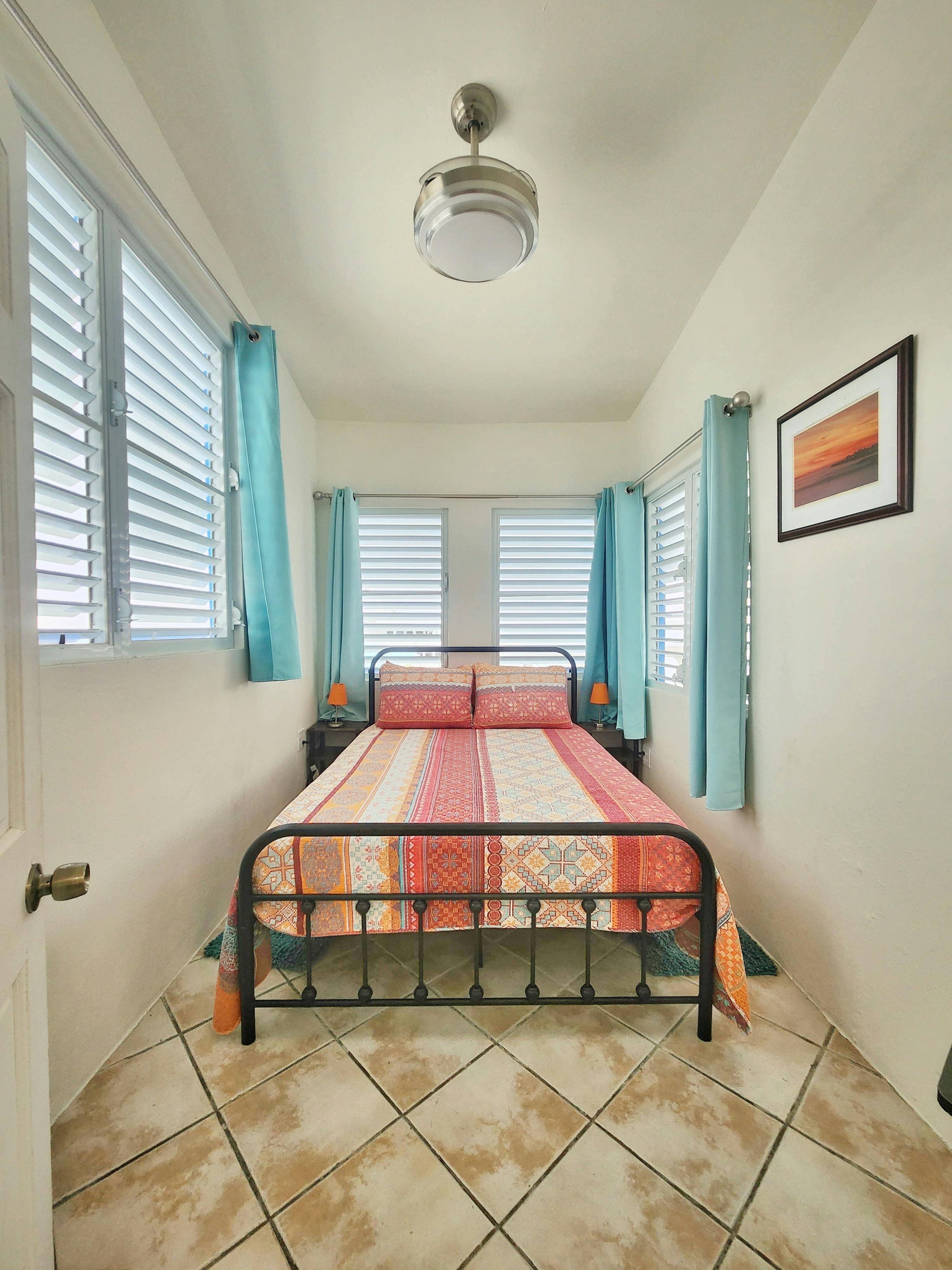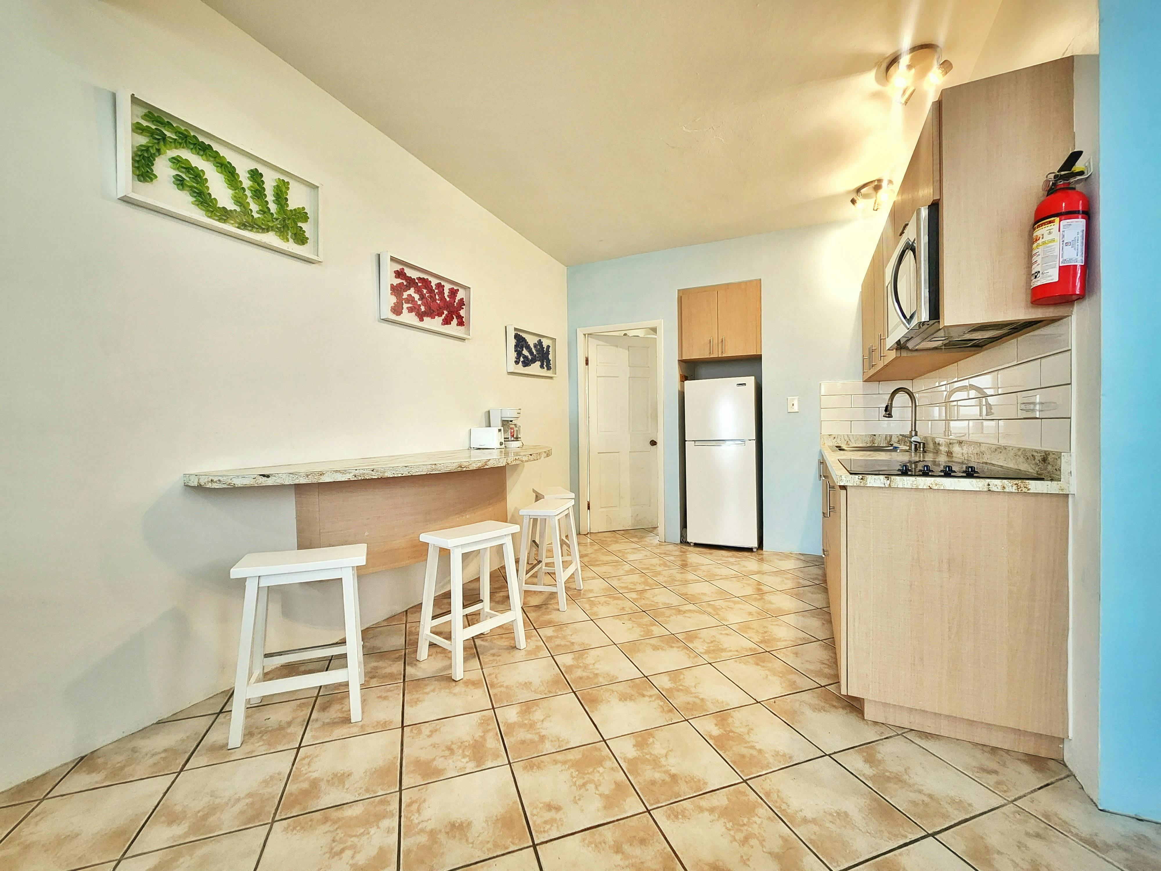 Penthouse Apartment 9 is a spacious suite ideal for larger groups. It features 2 bedrooms, a kitchen, a living area, a full bathroom, a shared terrace with ocean view, and a private balcony with ocean view. The suite sleeps up to 6 adults: 4 between a queen and two twin beds in the first bedroom and 2 in the second bedroom.